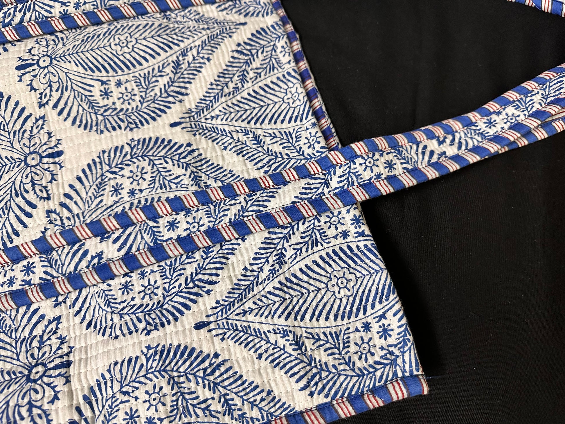 With our cotton quilted tote bags, you can bring everything you need with you wherever you go, no matter the situation. It accommodates a beach towel and swimsuit as well as your laptop for the workplace. Ideal for daily use, work, temple, college, shopping, and travel.