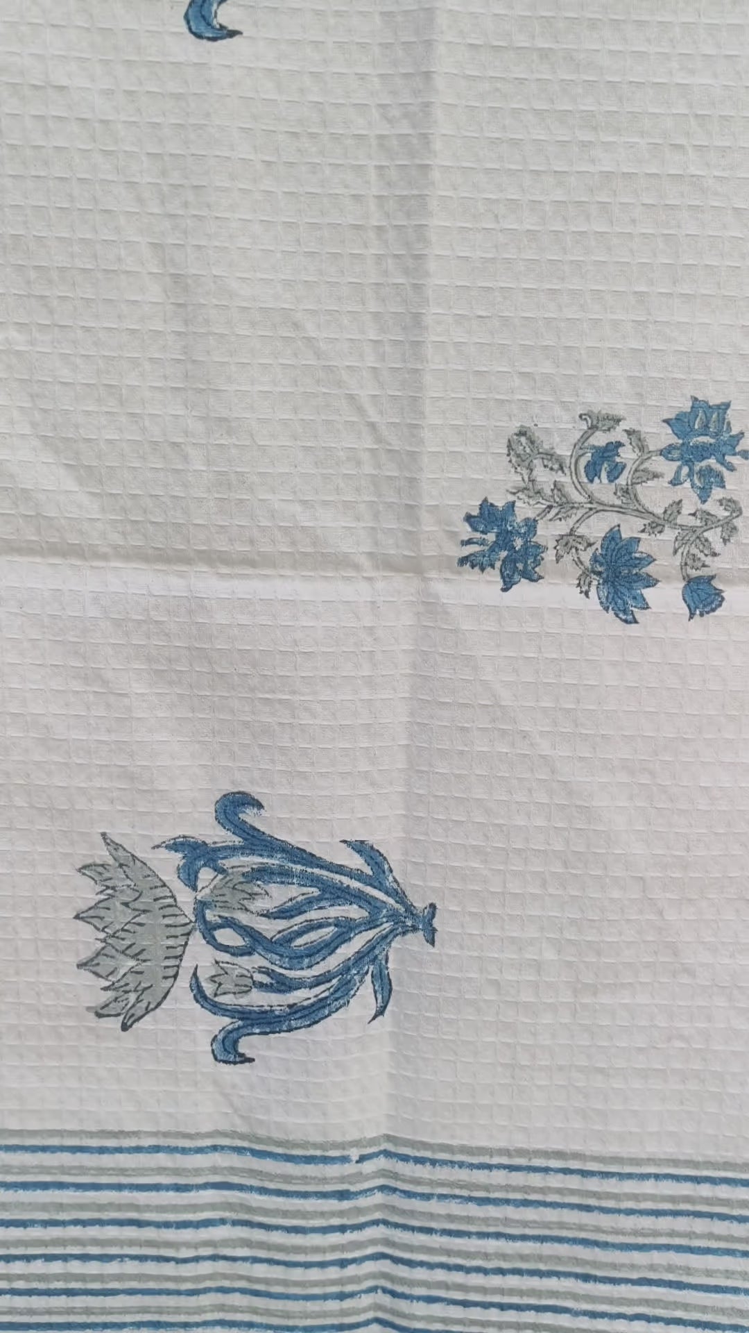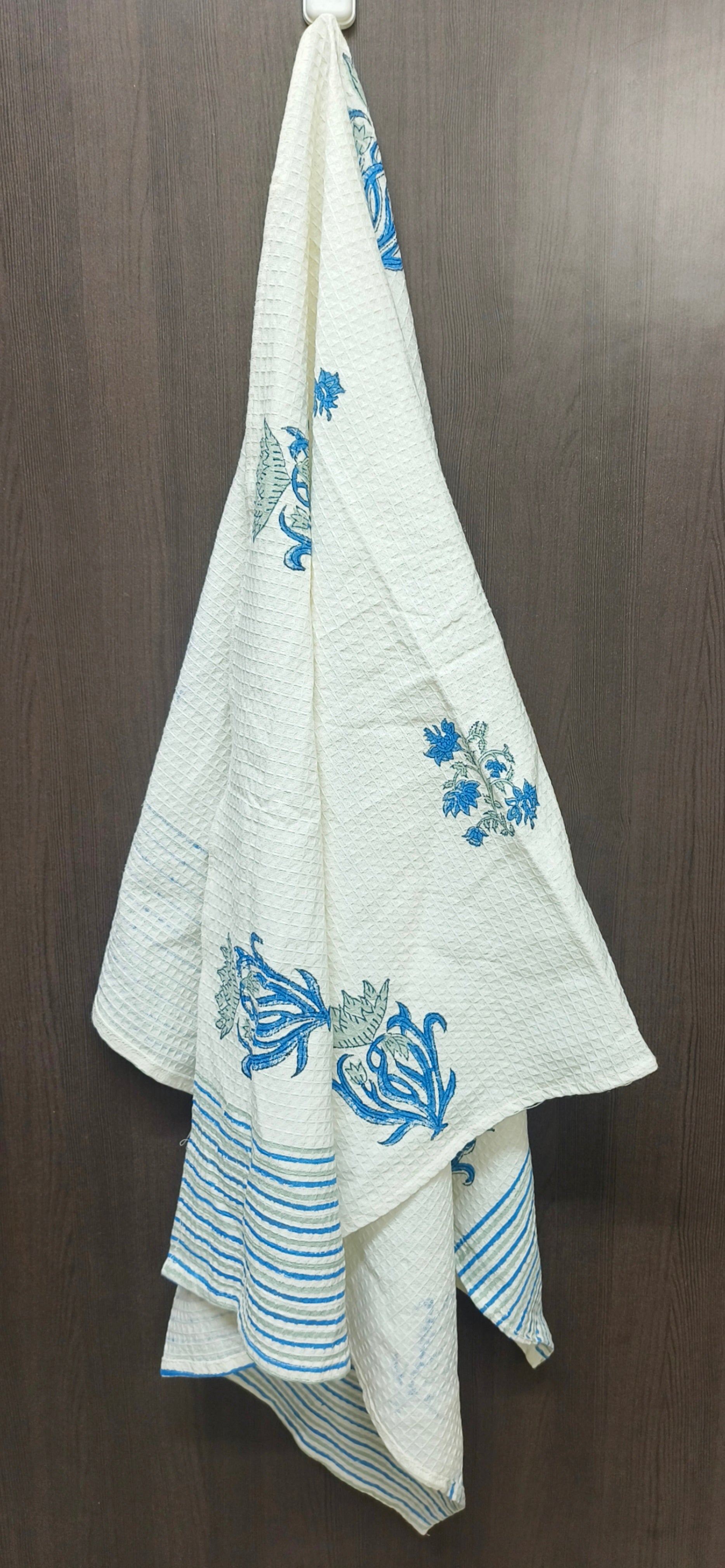 Hand Block Cotton Honeycomb Towel (Blue Boota)