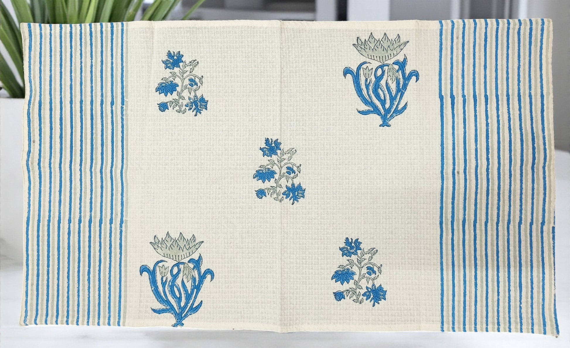 Hand Block Cotton Honeycomb Towel Set (1 Bath Towel 2 Hand Towels)-Neela Boota