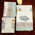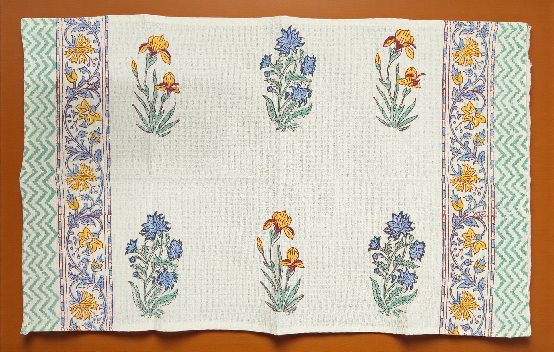 Hand Block Cotton Honeycomb Towel Set (1 Bath Towel 2 Hand Towels)-Artistic Flowers