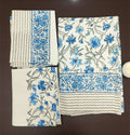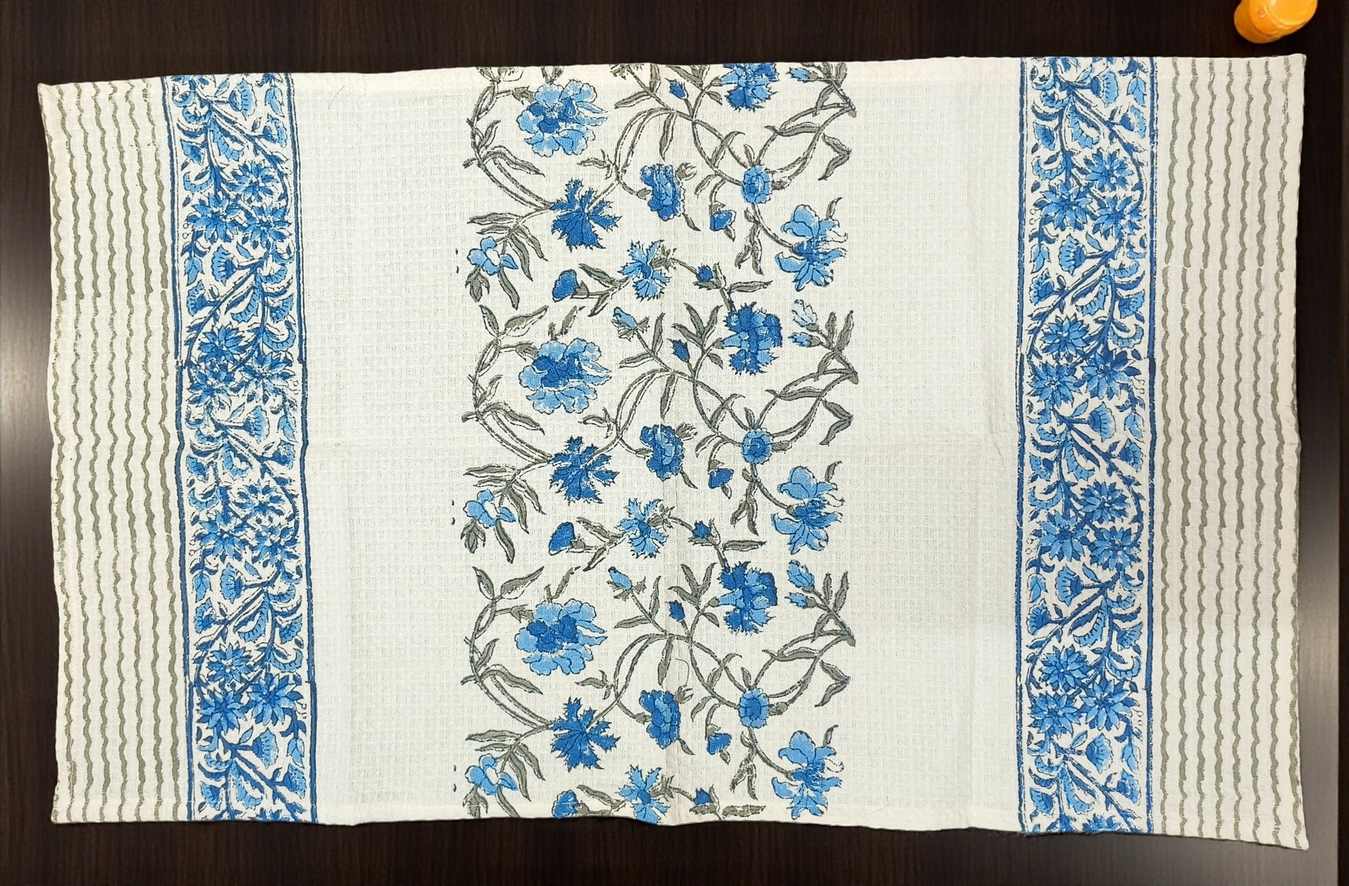Hand Block Cotton Honeycomb Towel Set (1 Bath Towel 2 Hand Towels)- Blue Floral