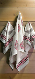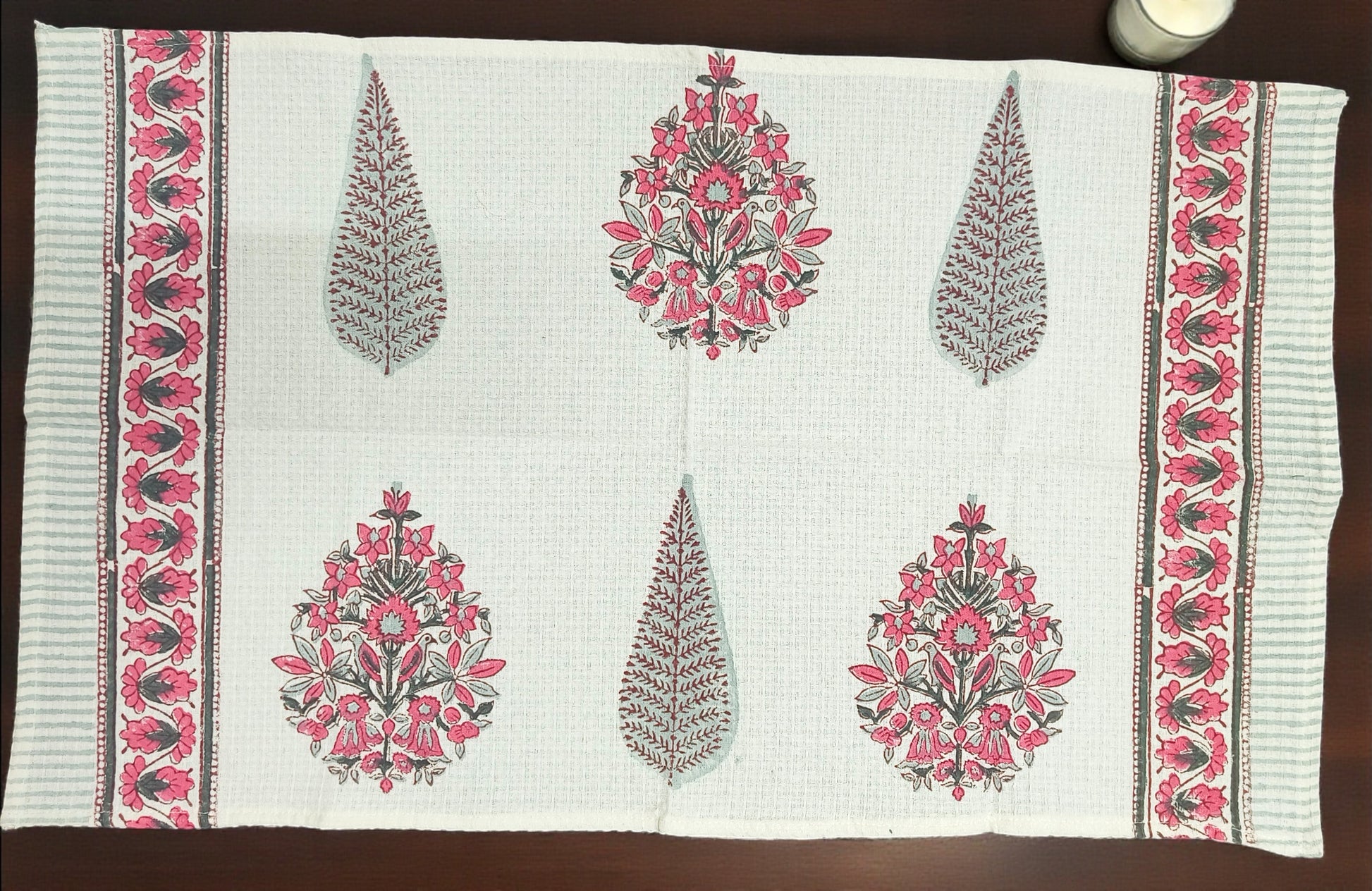 Hand Block Cotton Honeycomb Towel Set (1 Bath Towel 2 Hand Towels)- Floral Bliss