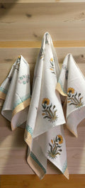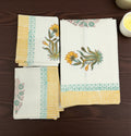 Hand Block Cotton Honeycomb Towel Set (1 Bath Towel 2 Hand Towels)- Yellow Flower Set