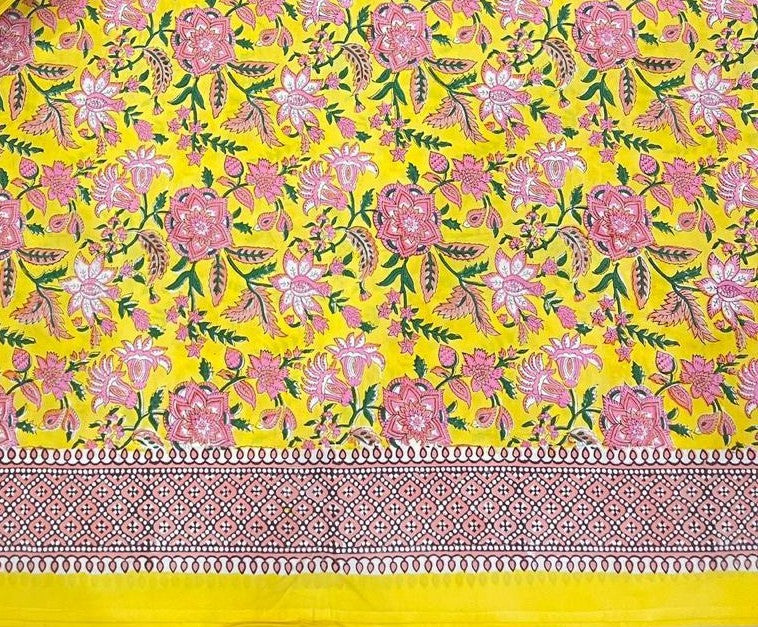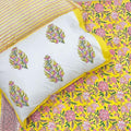 Hand Block Percale Cotton Premium King Size Bedsheet (Peela Gulabi)