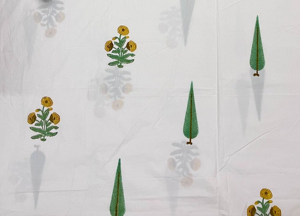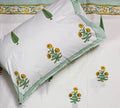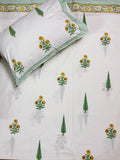 Hand Block Percale Cotton Premium King Size Bedsheet (Yellow Flower Green Tree)