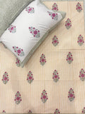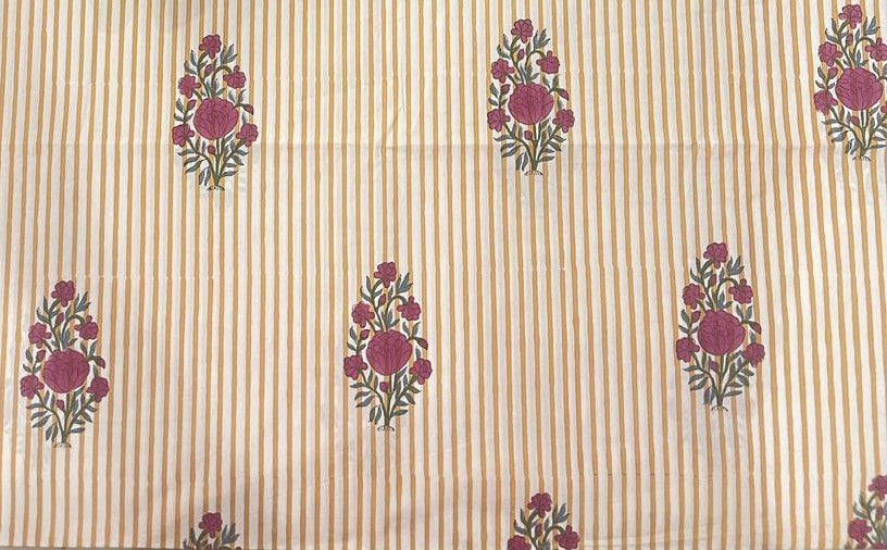 Hand Block Percale Cotton Premium King Size Bedsheet (Striped)