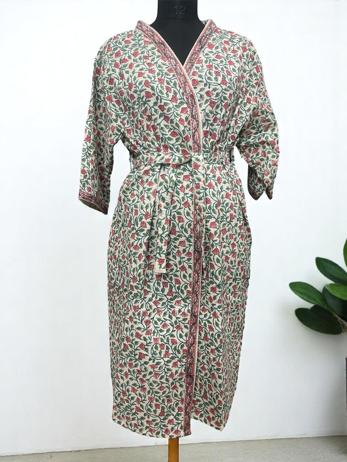 Wrap yourself in elegance and comfort with our Hand Blocked Waffle Cotton Bathrobe. Crafted from premium-quality cotton waffle fabric, this lightweight yet cozy robe is perfect for lounging in style. The breathable texture ensures all-day comfort, while the intricate hand-block adds a touch of timeless beauty.