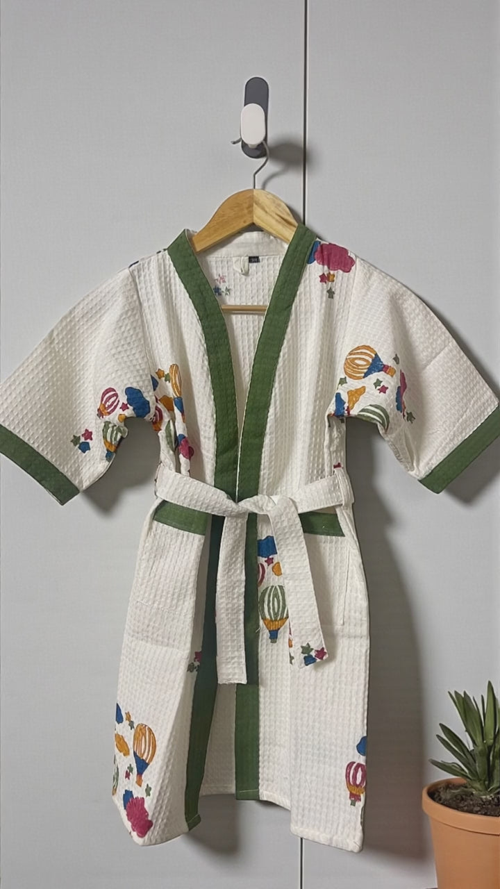 Hand Block Waffle Cotton Kids Bathrobe (Balloon Carnival)