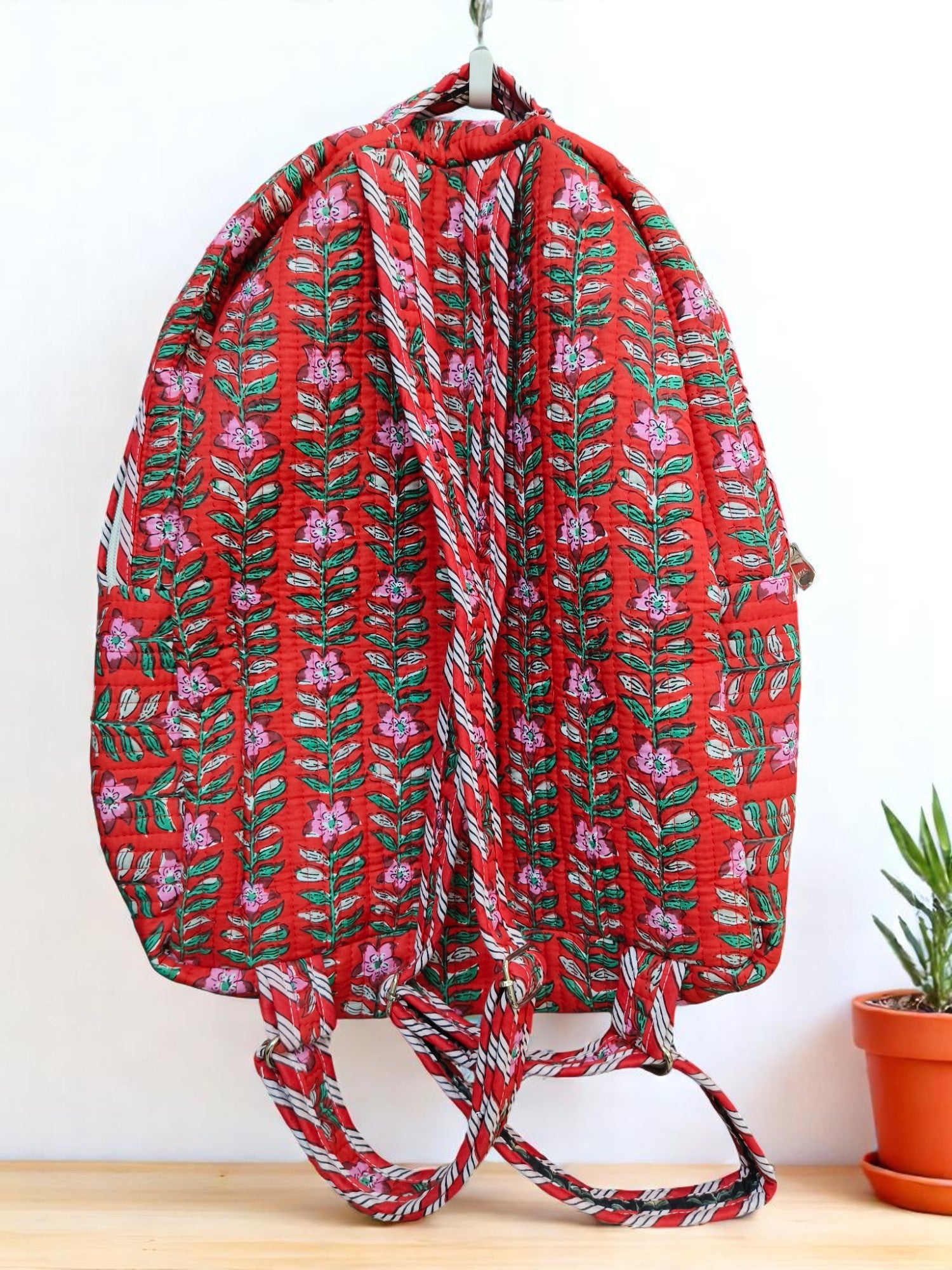 Upgrade your everyday carry with this stylish and vibrant handcrafted quilted cotton backpack. Designed with stunning floral patterns, this backpack is a perfect blend of tradition and modern functionality.