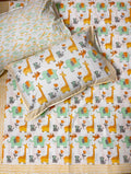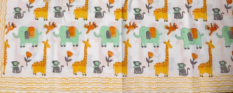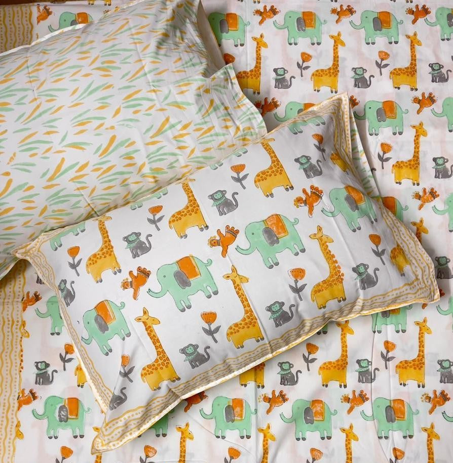 Kids Special Hand Block Percale Cotton Premium Bedsheet (Elephant Giraffe)