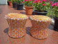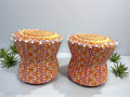 Rajasthani Mudda/Bamboo Traditional Style Stool Cover - Size 17x18 Inches (Set of 2 Pieces, Cover Only, Orange Ombre))