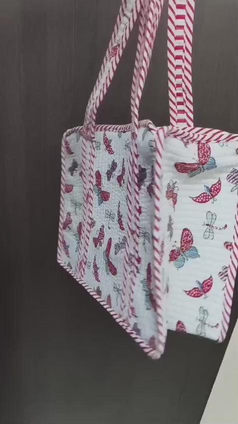 Hand Block Quilted Tote Summer/ Tiffin/ Picnic/ Multipurpose Bag (kids Series)